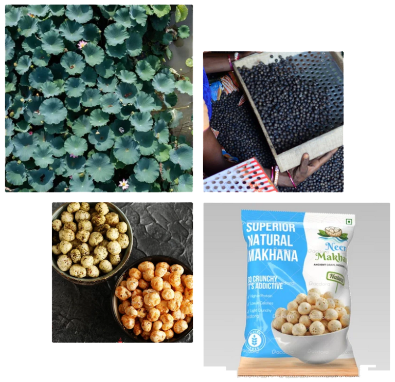 Optional seasoning or roasting may be added before packing for consumption. The process ensures that makhana remains natural, plant-based, gluten-free, and rich in nutrients.
